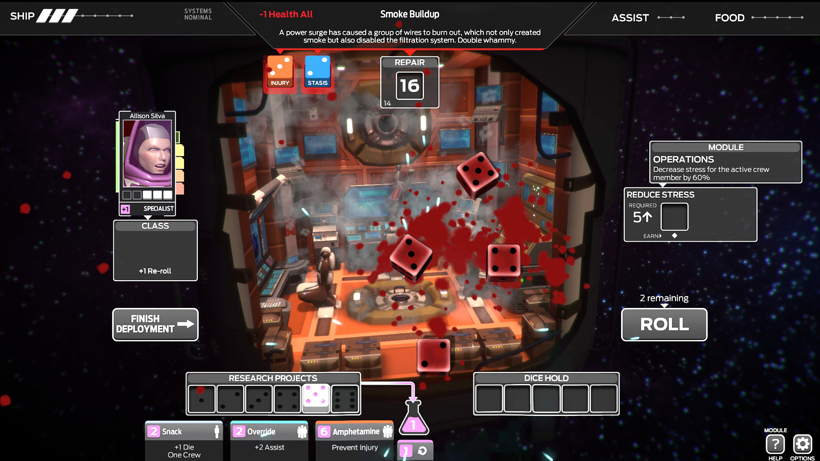 TIP: Each module has an ability. You can get food, repair the ship, even reduce stress or gain more assist.